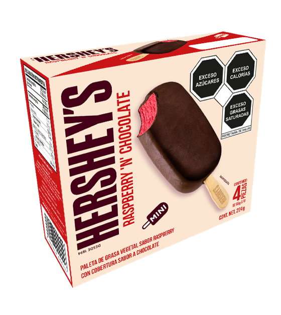 Paleta de frambuesa, cubierta con delicioso chocolate Hershey’s. Dulce, frutal y chocolatosita, un antojo irresistible.